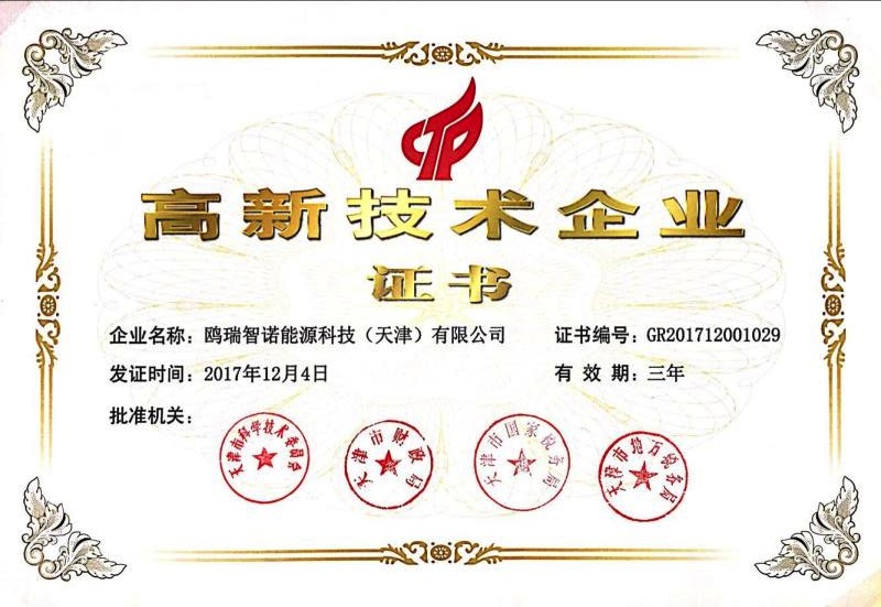 2017年12月,OE天津公司获得“高新技术企业”称号,标志着 OE能源公司的发展又迈上了一个新台阶!